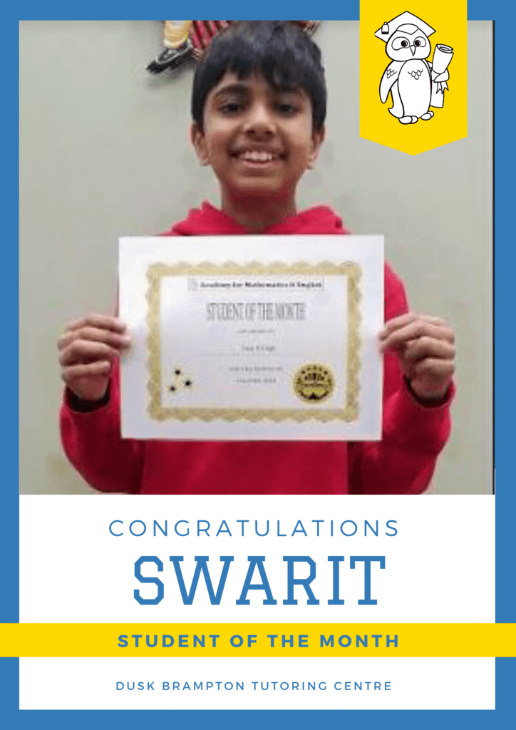 “Dhruv is in grade 5 and has been a student at Dusk Brampton Academy since June 2019. He has always been a student who strives for excellence. Last week, all grade 5 were quizzed on certain Math topics and Dhruv topped his class. He is a hard-working student who puts forth maximum effort and it is reflected in his academic growth.