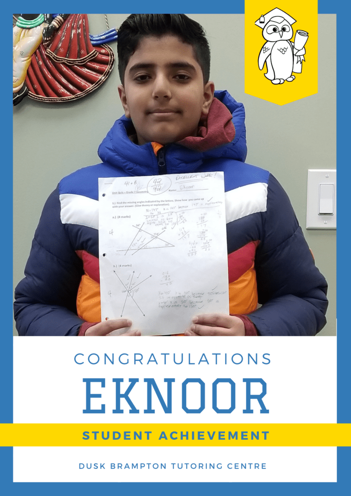 Congratulations to Eknoor Sidhu – On acing your school Geometry quiz! Well done!