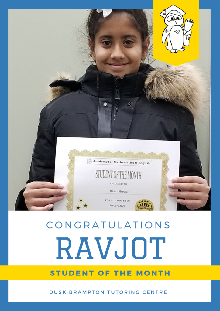 Congratulations to Ravjot Grewal – Student of the Month for January 2020!