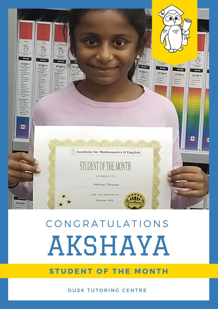 Congratulations to Akshaya Theepan – Student of the Month for October 2020!